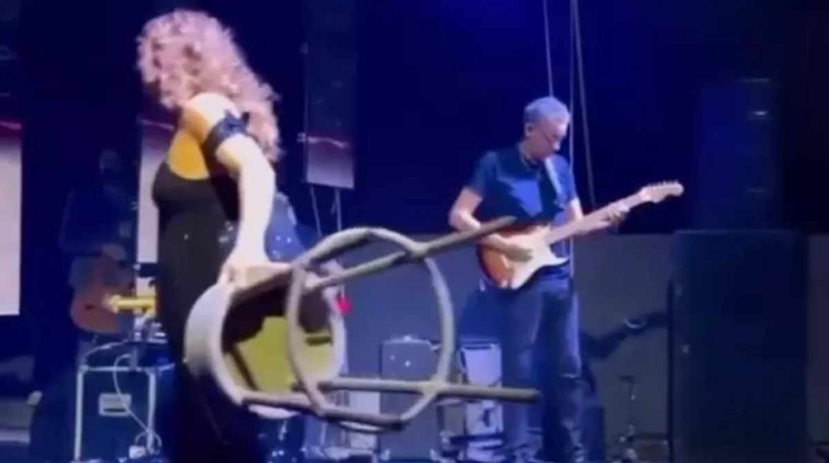 A cantora, incomodada com a presença de um banco no palco, resolveu, com a maior naturalidade do mundo, arremessar o pobre coitado para longe. O que seria isso, minha gente? Um protesto contra a mobília? Uma metáfora artística para o "desapego"? Ou só birra mesmo? Fica a dúvida.