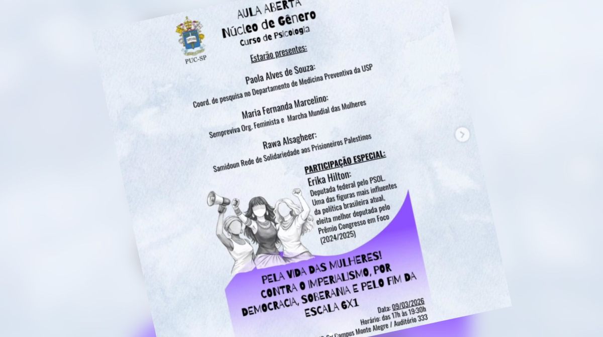 A Universidade PUC-SP foi palco de uma aula aberta que reuniu lideranças de diferentes movimentos sociais. O evento, promovido pelo Núcleo de Gênero do curso de Psicologia, contou com a presença de Rawa Alsagheer, coordenadora do grupo Samidoun, e Erika Hilton, parlamentar do Psol.